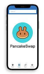 Click on the "DApps" icon on the bottom navbar and select the "PancakeSwap" application.