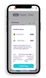 PancakeSwap will automatically calculate BNB/ARV rates and show them on the bottom box and click the "Swap" button.